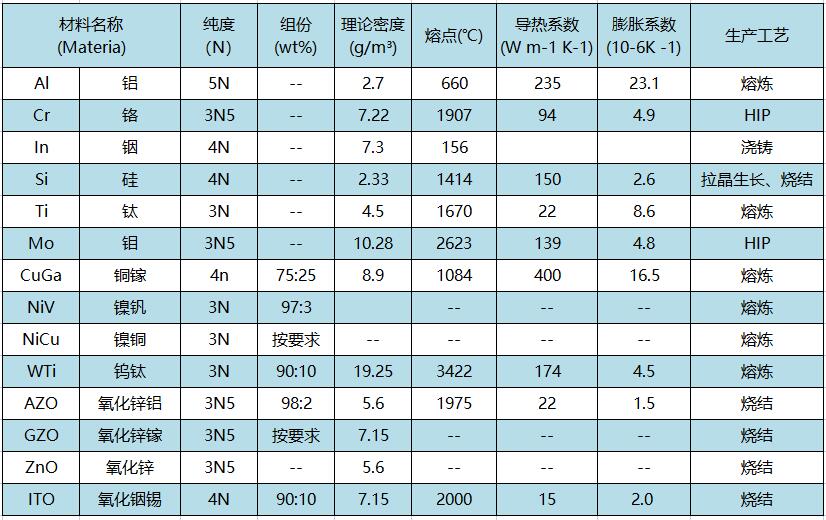 燦元在太陽(yáng)能光伏領(lǐng)域中主要提供以下靶材產(chǎn)品: